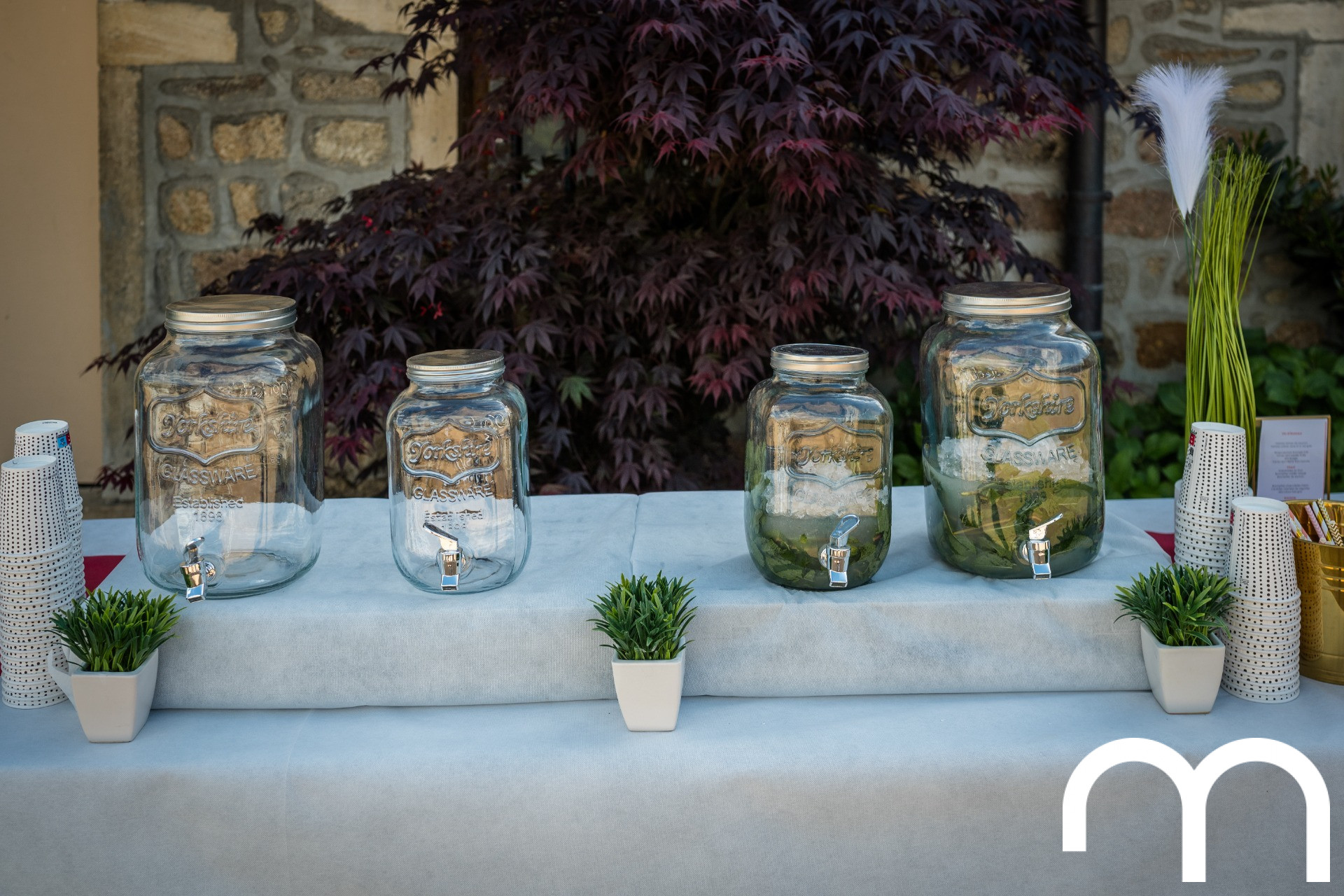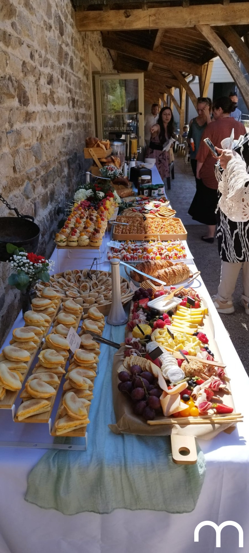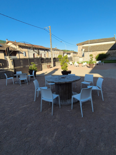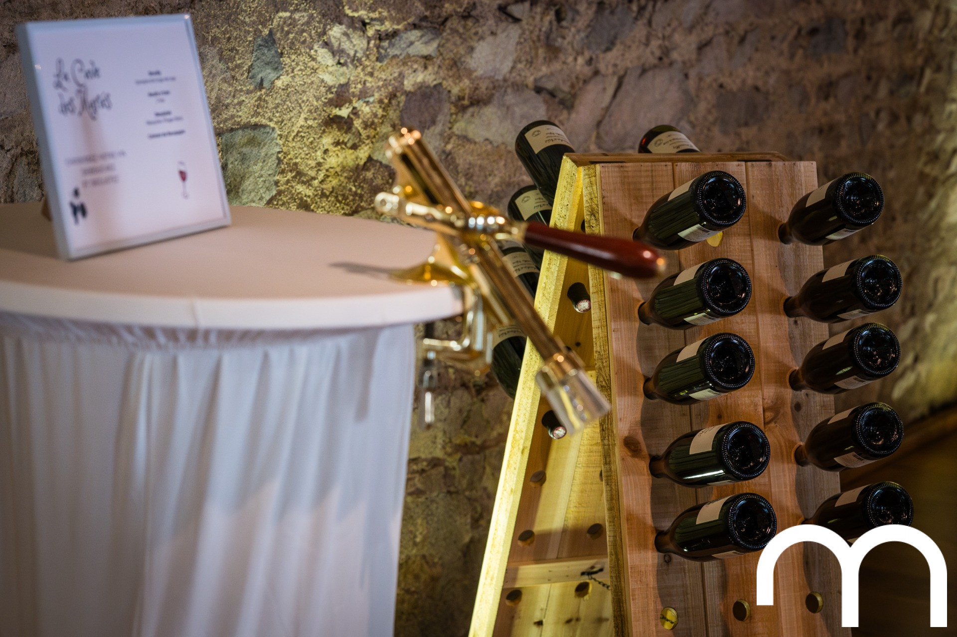 Le cocktail a été servie dans notre coure exterieur attenante a notre caveau typique et historique du Beaujolais. La réception s'est poursuivie dans notre salle de réception au charme authentique, alliant pierres anciennes et poutres apparentes.