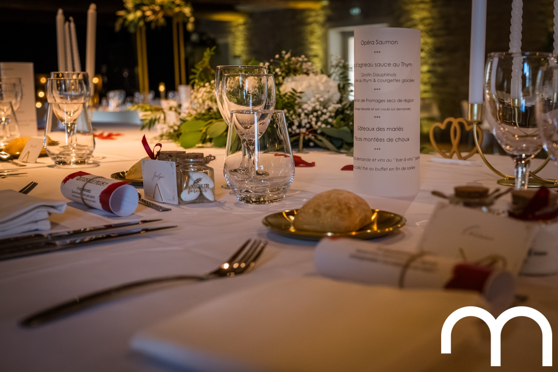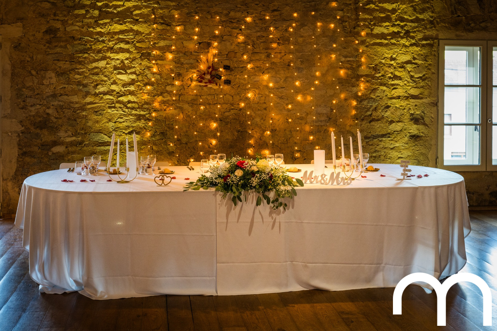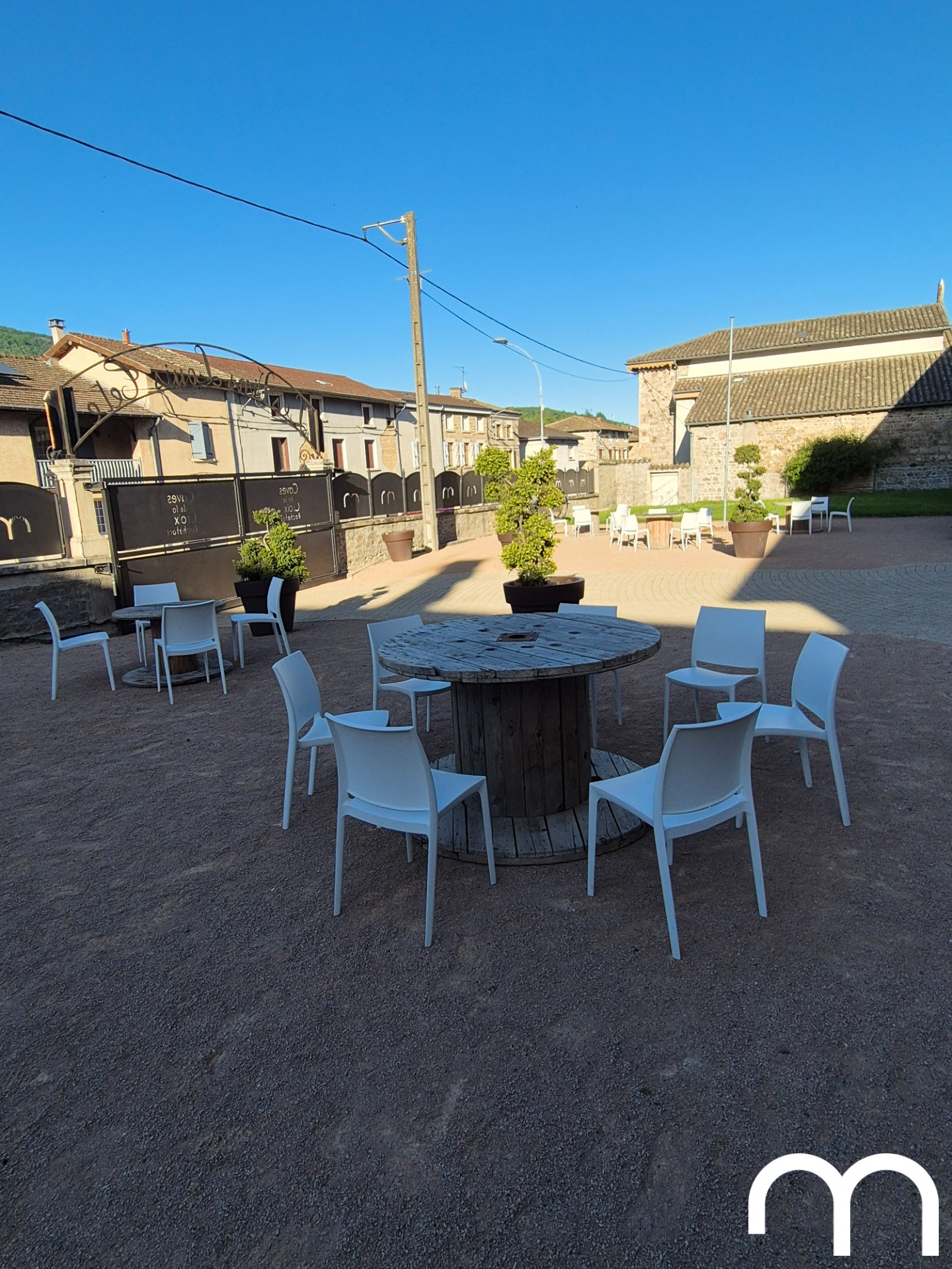 Le cocktail a été servie dans notre coure exterieur attenante a notre caveau typique et historique du Beaujolais. La réception s'est poursuivie dans notre salle de réception au charme authentique, alliant pierres anciennes et poutres apparentes.